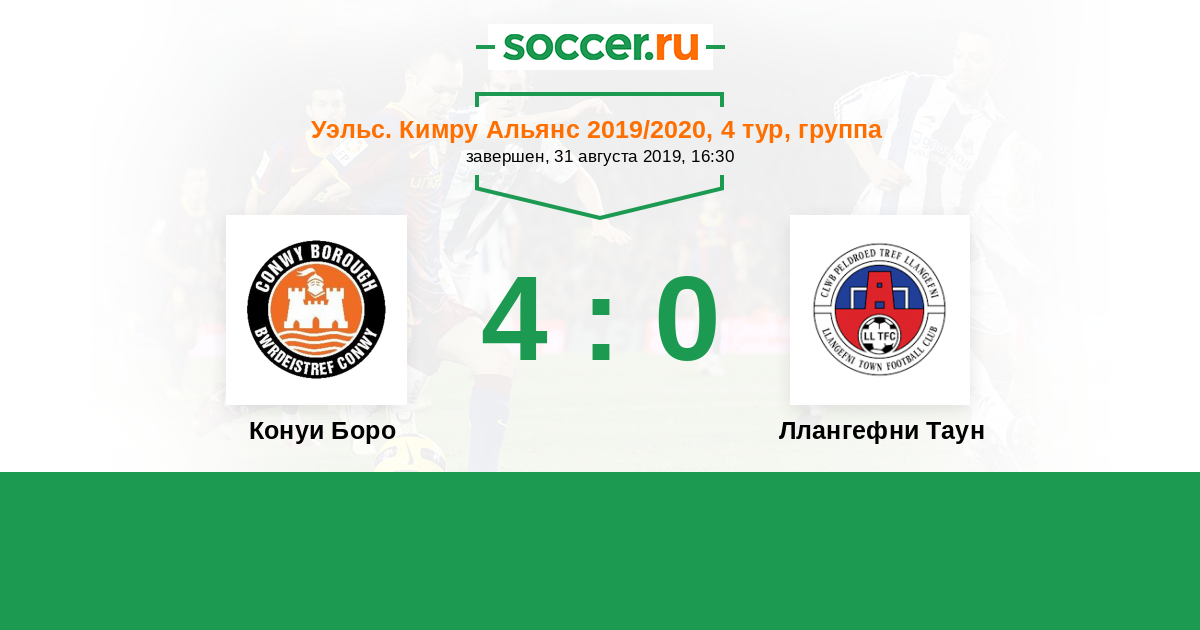| Ллангефни Таун | 2:13 | 2:8 | 0:5 |
