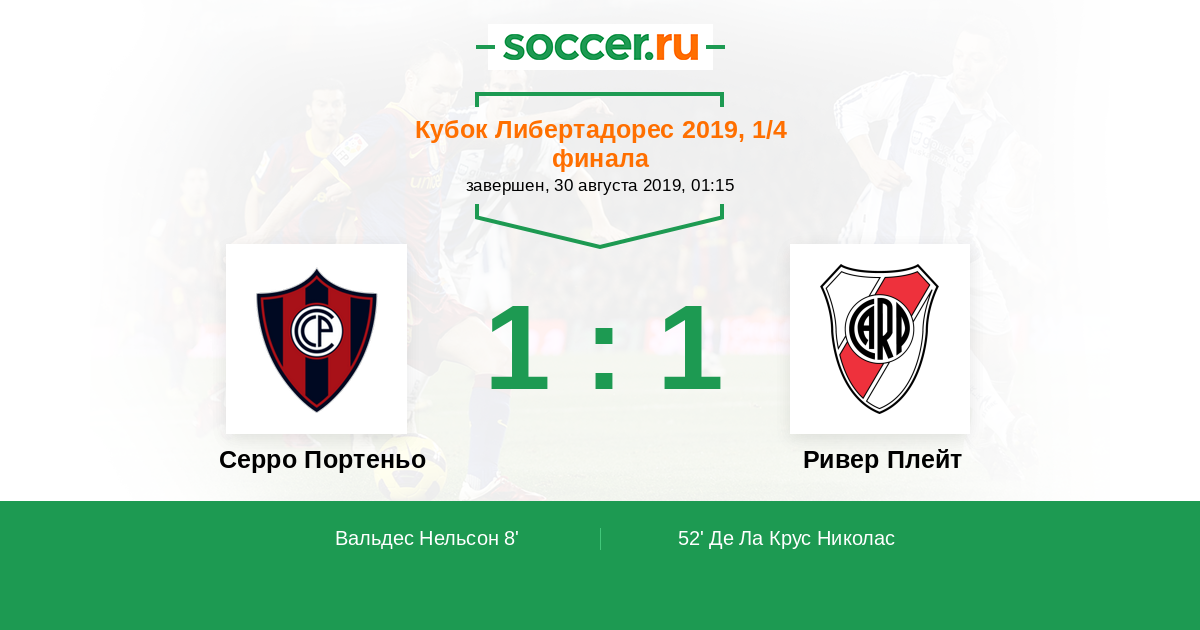 | Ривер Плейт | 2:0 | 2:0 | 0:0 |
