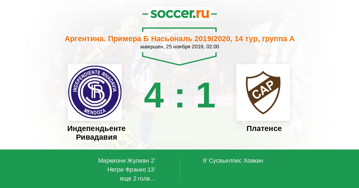 | Индепендьенте Ривадавия | Платенсе | |