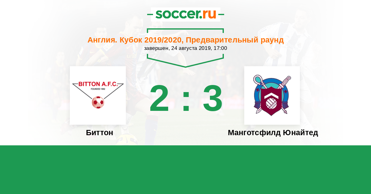 | Манготсфилд Юнайтед | 5:0 | 5:0 | 0:0 |