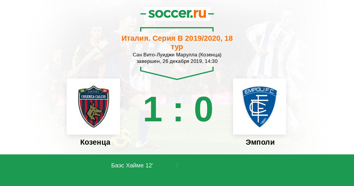 | Козенца | 11:15 | 1:6 | 10:9 |
