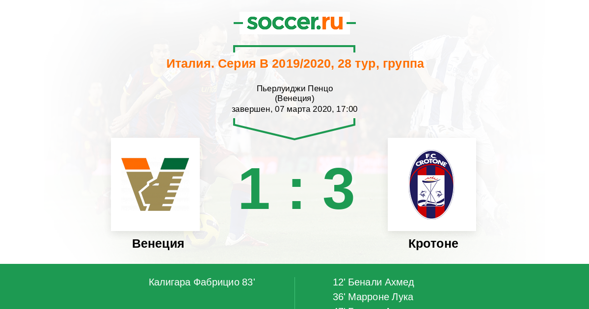 Последние 5 игр дома Венеция