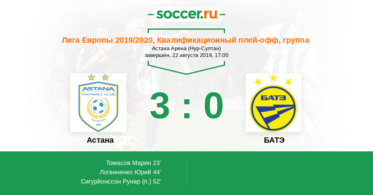 | Астана | БАТЭ | |