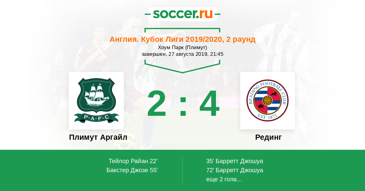 | Плимут Аргайл | 6:9 | 5:5 | 1:4 |