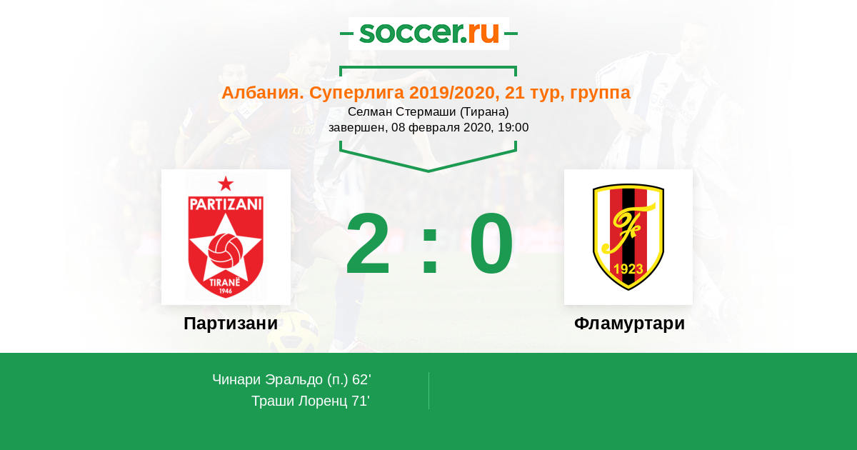 | Фламуртари | 35:63 | 20:25 | 15:38 |