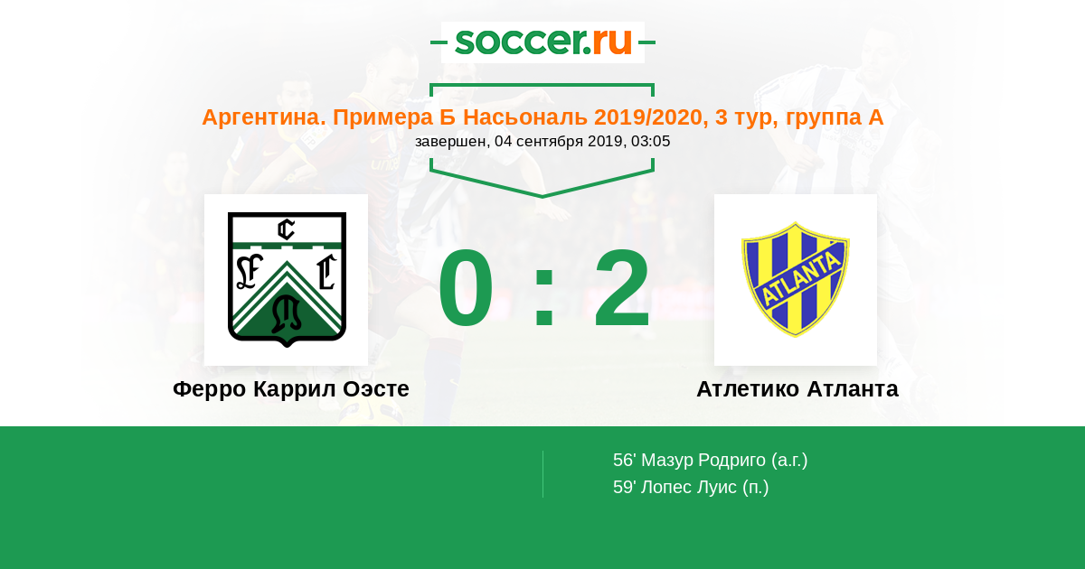 | Ферро Каррил Оэсте | Атлетико Атланта | |