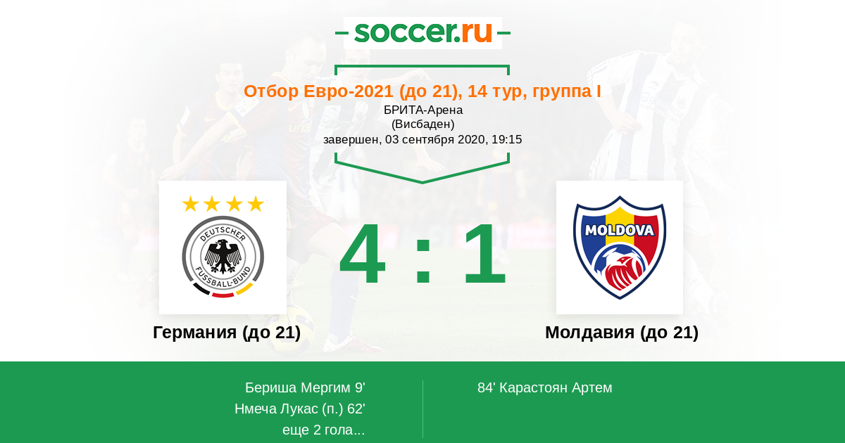| Германия (до 21) | 5:0 | 0:0 | 5:0 |