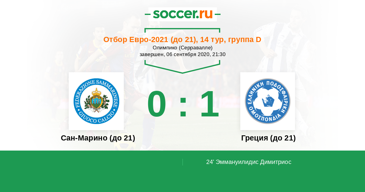 | Сан-Марино (до 21) | Греция (до 21) | |