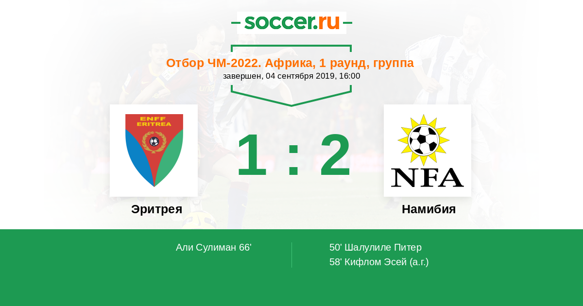 | Эритрея | 0:2 | 0:0 | 0:2 |