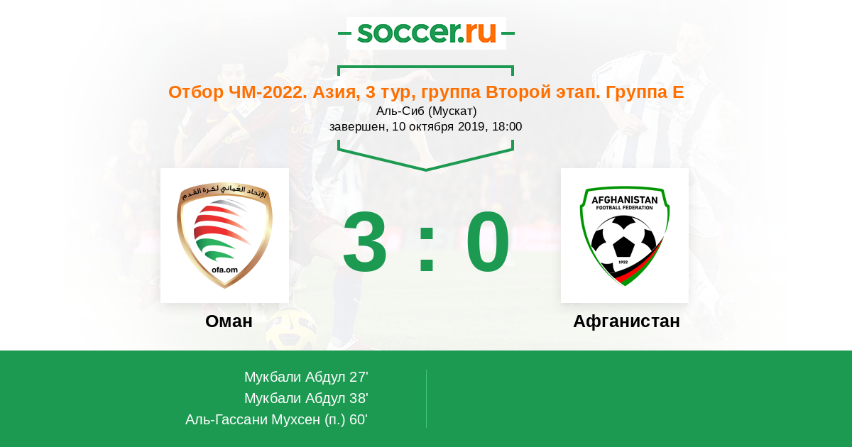| Оман | 4:1 | 2:0 | 2:1 |