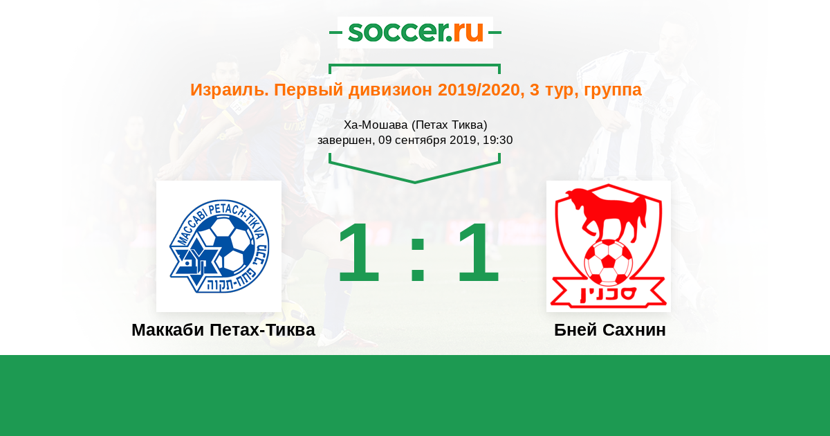 | Маккаби Петах-Тиква | Бней Сахнин | |