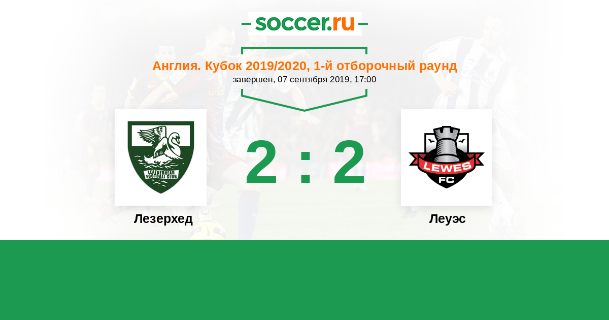 | Лезерхед | 2:2 | 0:0 | 2:2 |