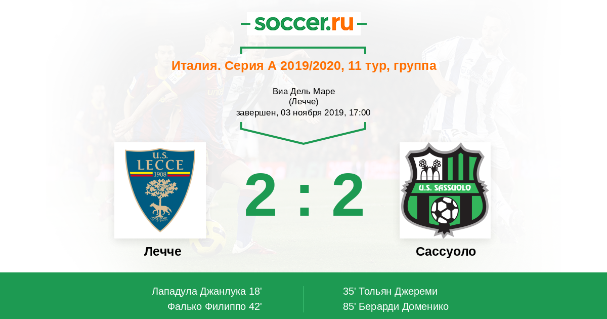 | Сассуоло | 10:7 | 6:6 | 4:1 |