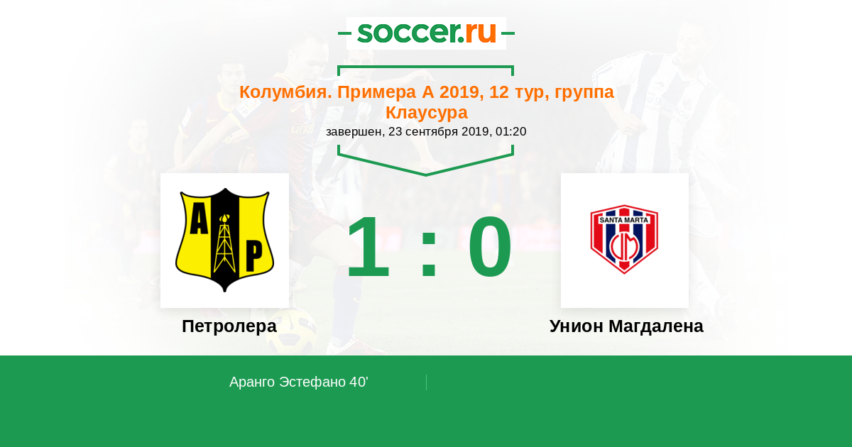| Унион Магдалена | 38:27 | 25:15 | 13:12 |