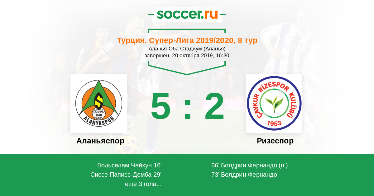 | Аланьяспор | 16:16 | 12:7 | 4:9 |