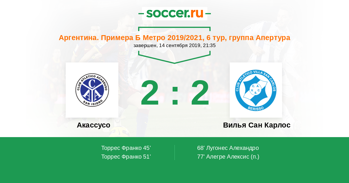 | Аргентина. Примера С Метро | 2 | 1 | 0 | 1 |