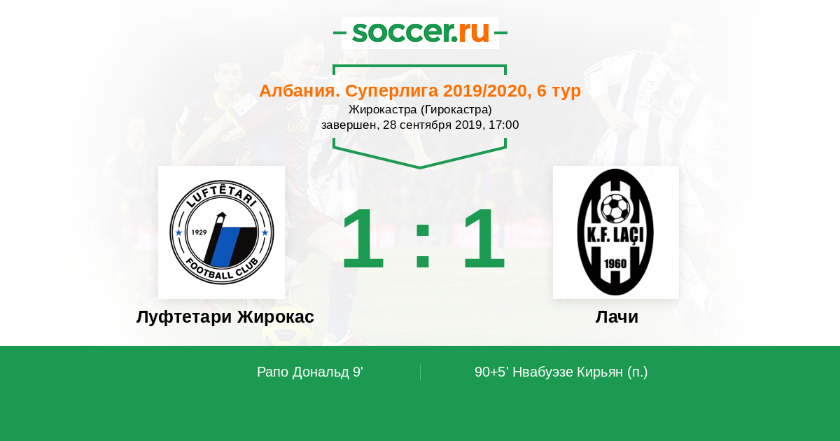 | Албания. Суперлига | 17 | 5 | 8 | 4 |