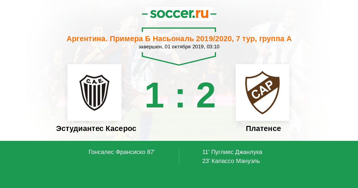 | Платенсе | 12:16 | 5:6 | 7:10 |