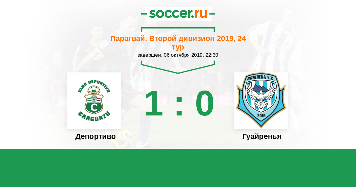 | Гуайренья | 6:1 | 6:1 | 0:0 |