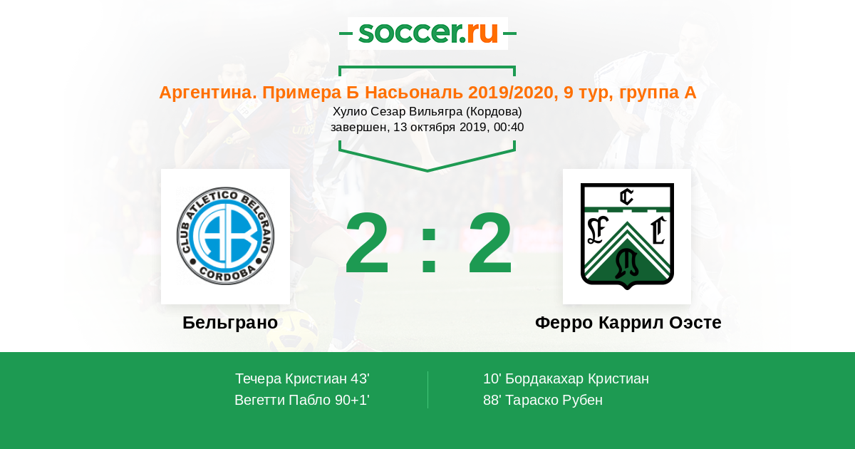 | Бельграно | Ферро Каррил Оэсте | |