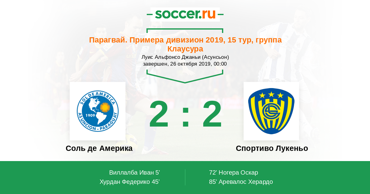 | Соль де Америка | Спортиво Лукеньо | |