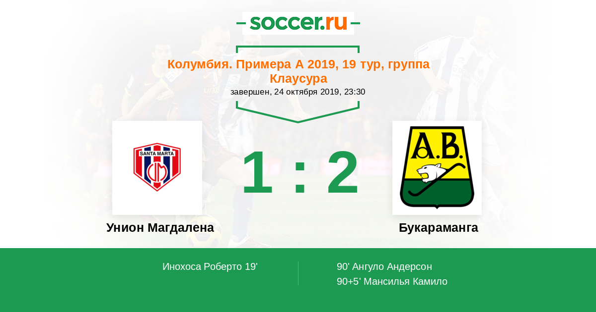 | Букараманга | 36:26 | 21:8 | 15:18 |