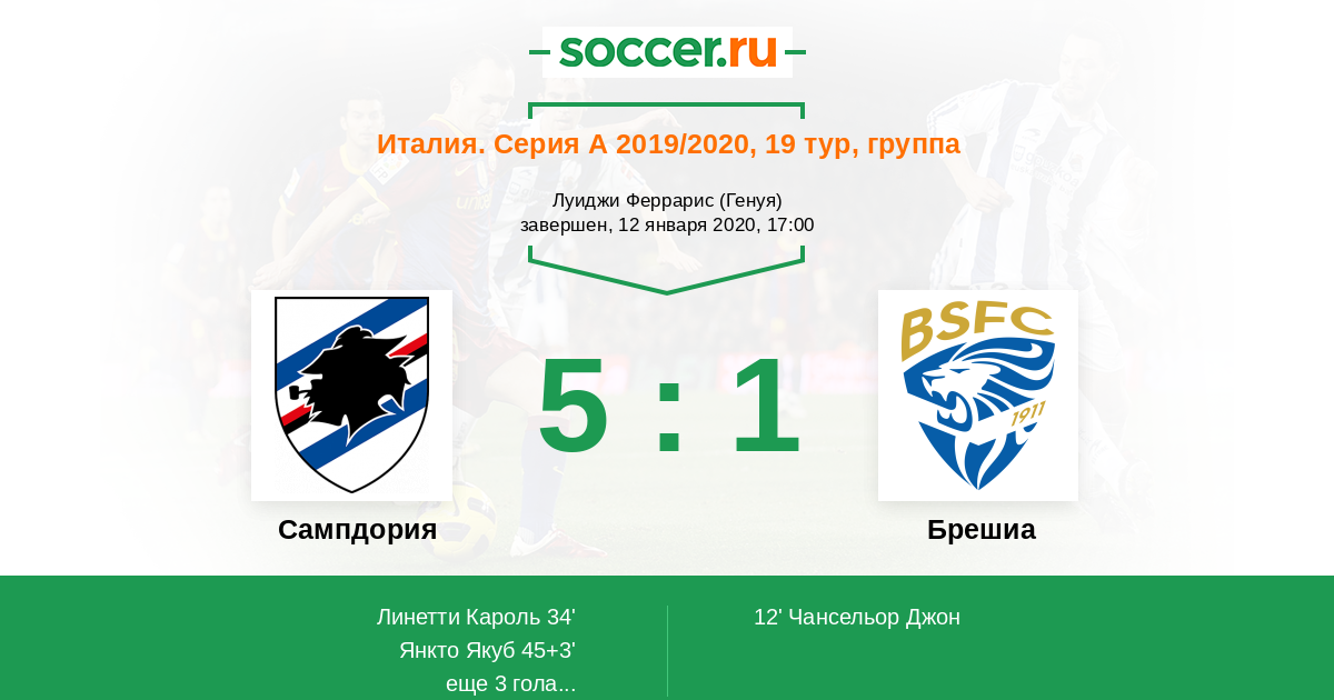 | Сампдория | 23:19 | 14:9 | 9:10 |