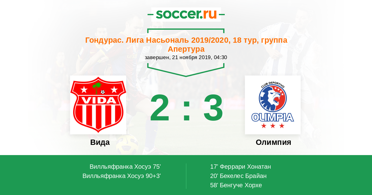 | Гондурас. Лига Насьональ | 69 | 10 | 39 | 20 |