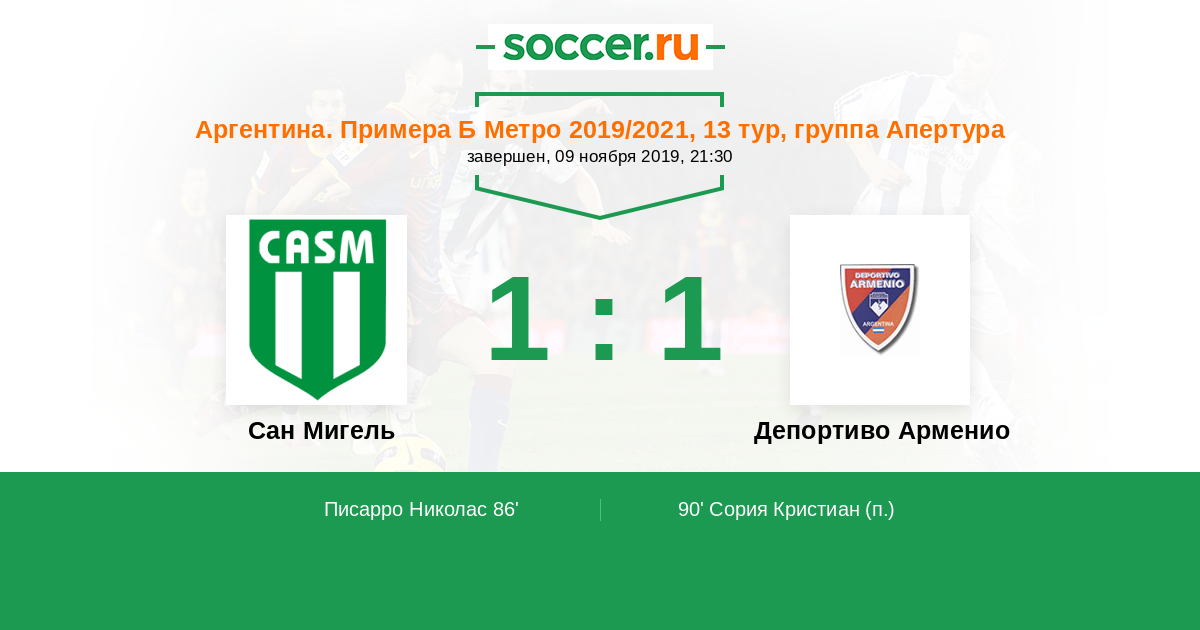 | Аргентина. Примера С Метро | 2 | 0 | 1 | 1 |