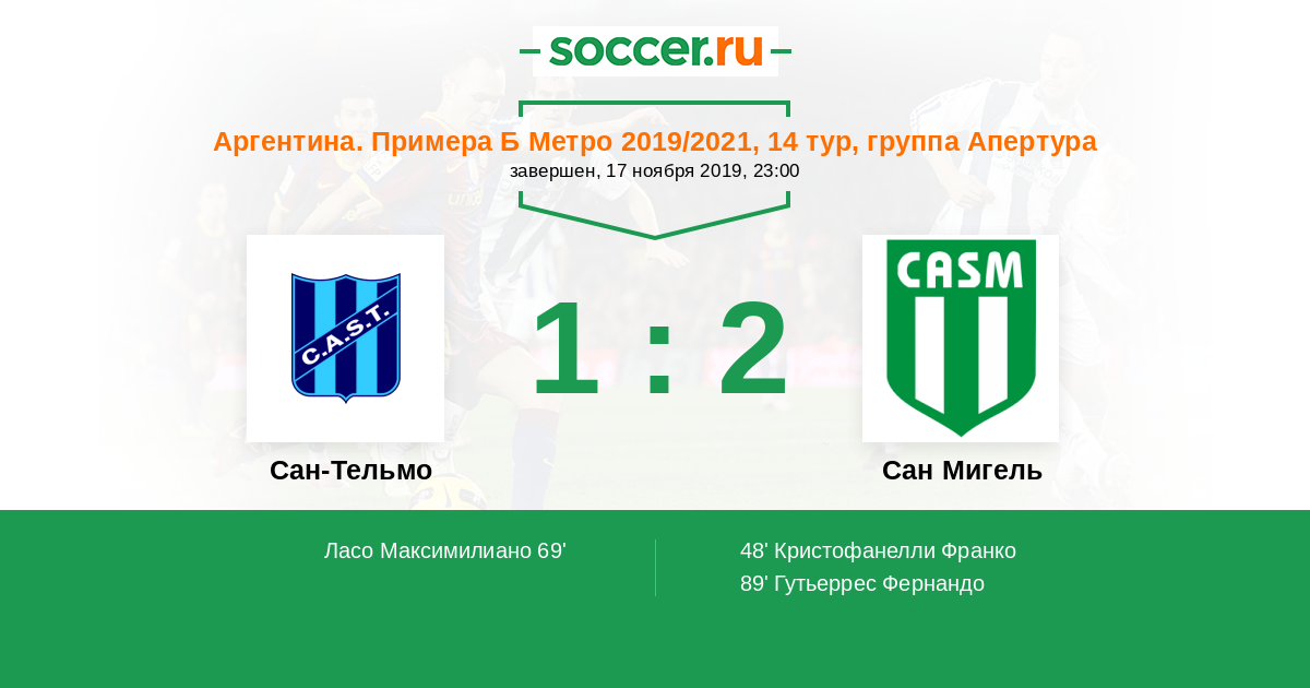 | Аргентина. Примера С Метро | 2 | 1 | 0 | 1 |