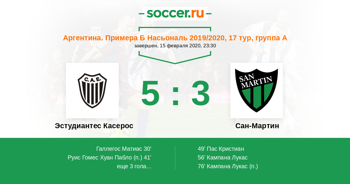 | Эстудиантес Касерос | 5:1 | 4:1 | 1:0 |