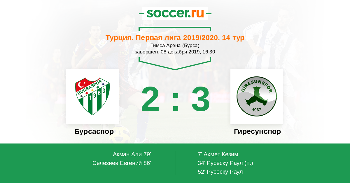 | Бурсаспор | 5:5 | 1:2 | 4:3 |