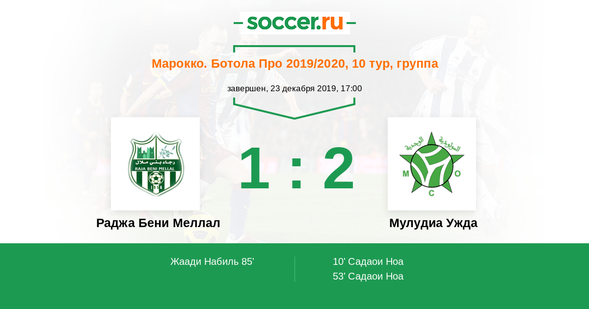 | Раджа Бени Меллал | Мулудиа Ужда | |