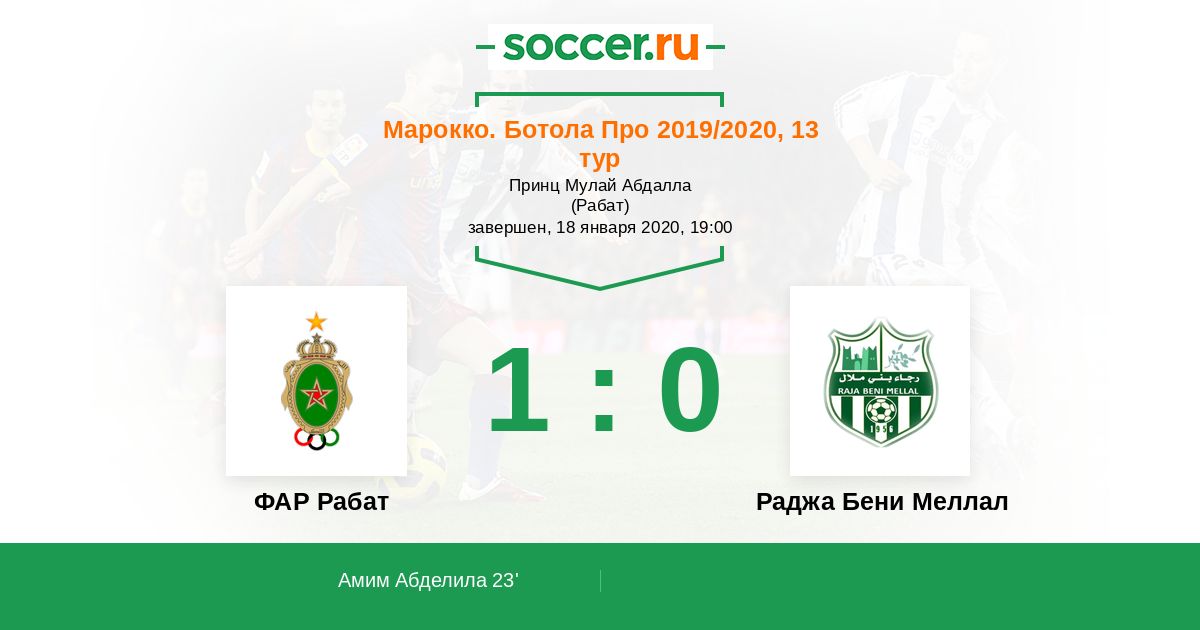 | ФАР Рабат | Раджа Бени Меллал | |