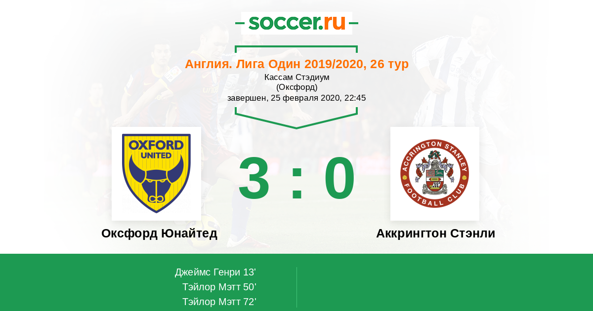 | Аккрингтон Стэнли | 32:47 | 18:23 | 14:24 |