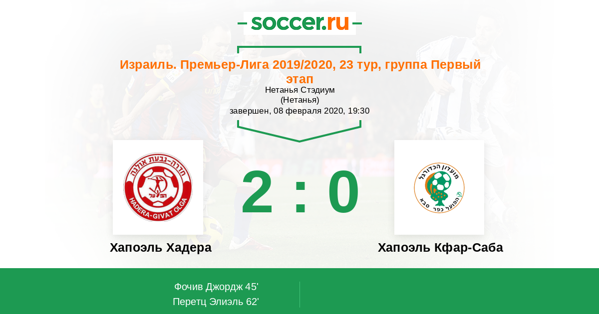 | Хапоэль Хадера | 10:6 | 2:1 | 8:5 |