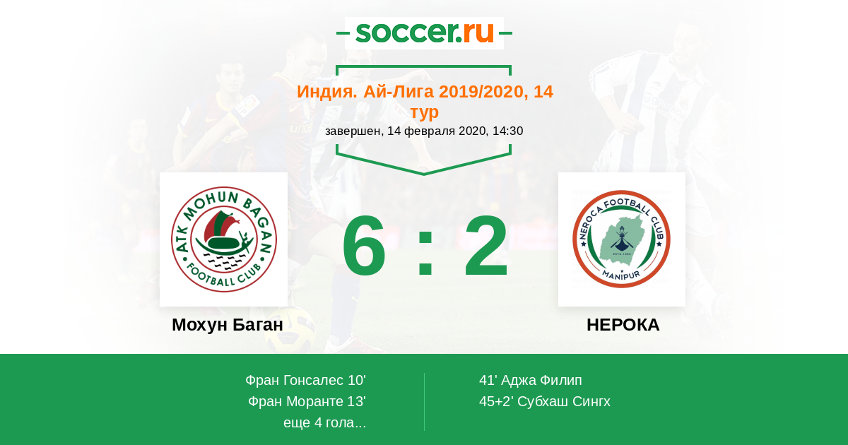 | Мохун Баган | 8:4 | 1:0 | 7:4 |