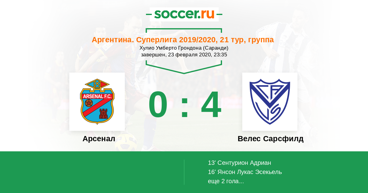 | Арсенал | Велес Сарсфилд | |