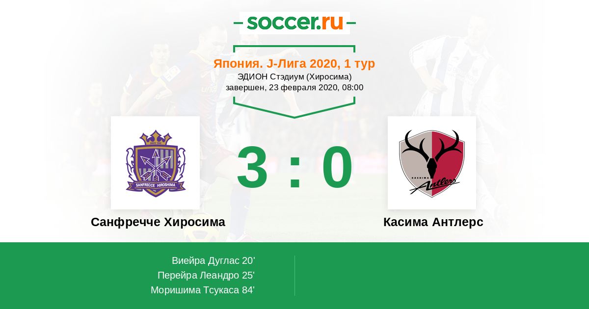 | Санфречче Хиросима | 53:70 | 25:32 | 28:38 |