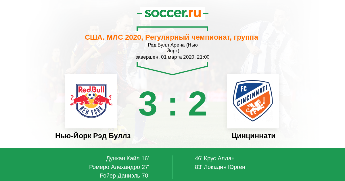 | Нью-Йорк Рэд Буллз | Цинциннати | |