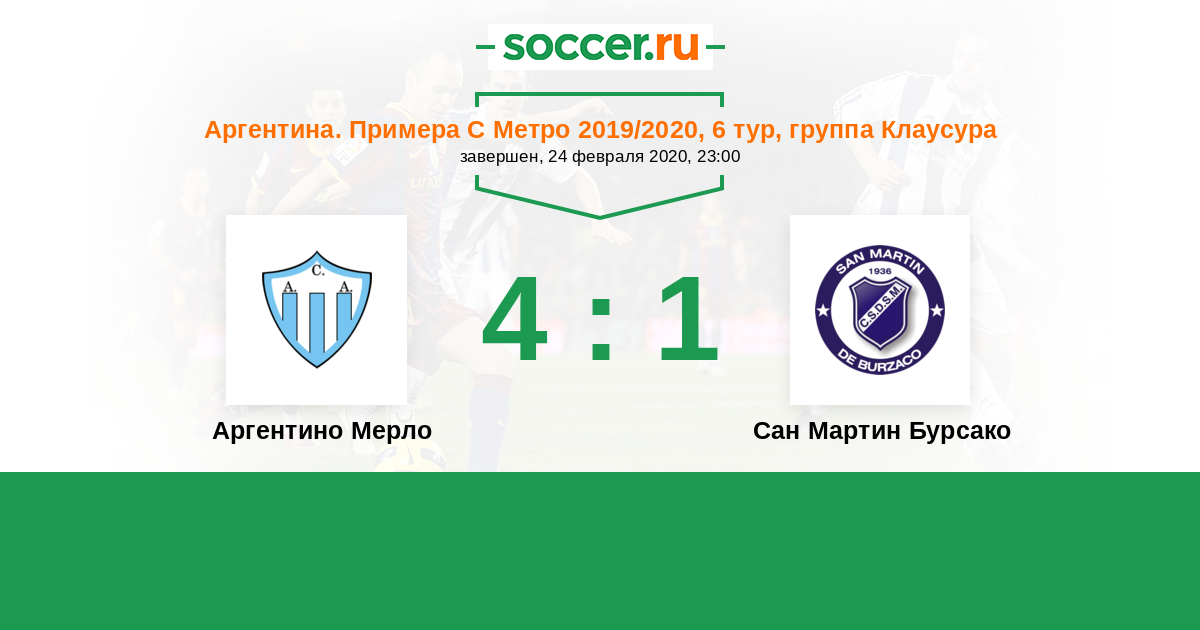 | Аргентино Мерло | Сан Мартин Бурсако | |