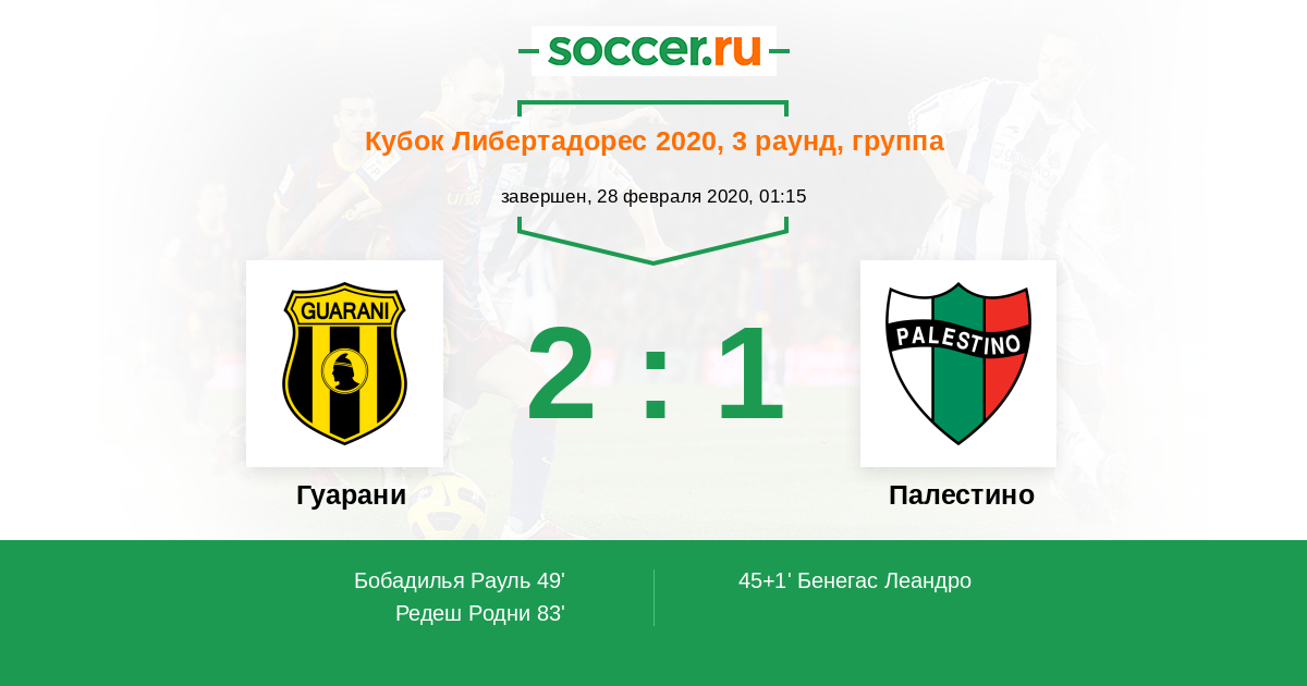| Гуарани | 1:0 | 0:0 | 1:0 |