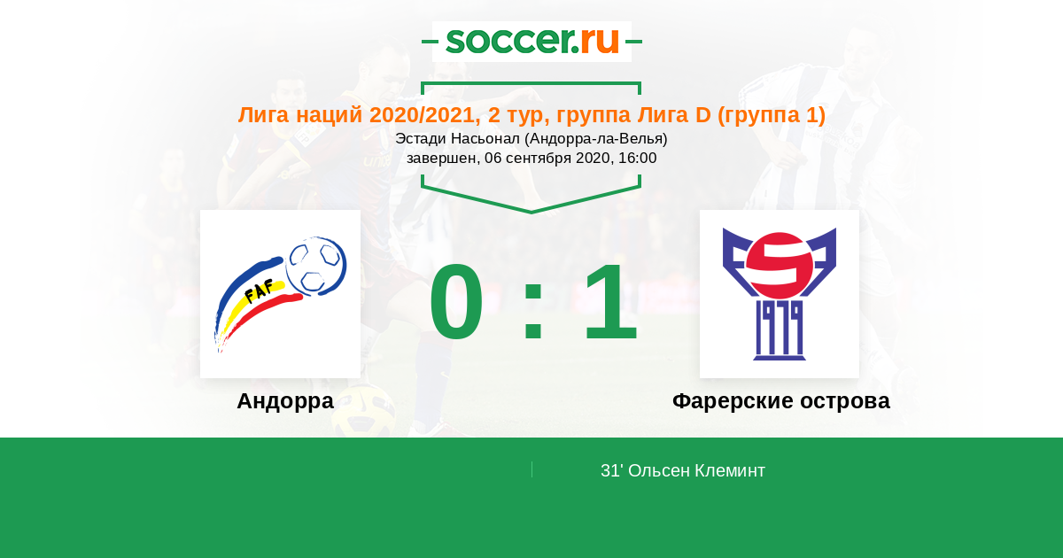 | Фарерские острова | 3:0 | 3:0 | 0:0 |