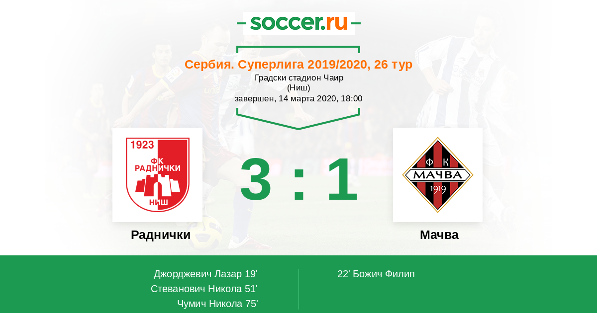 | Сербия. Первая лига | 2 | 1 | 0 | 1 |