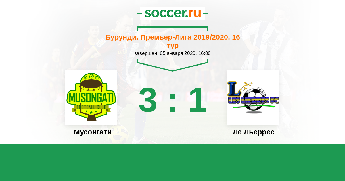 | Мусонгати | 2:1 | 0:0 | 2:1 |