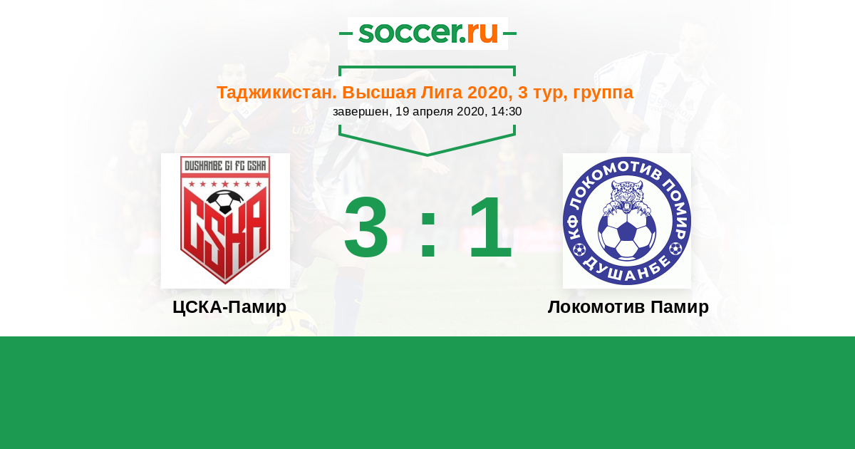 | Локомотив Памир | 3:2 | 3:2 | 0:0 |