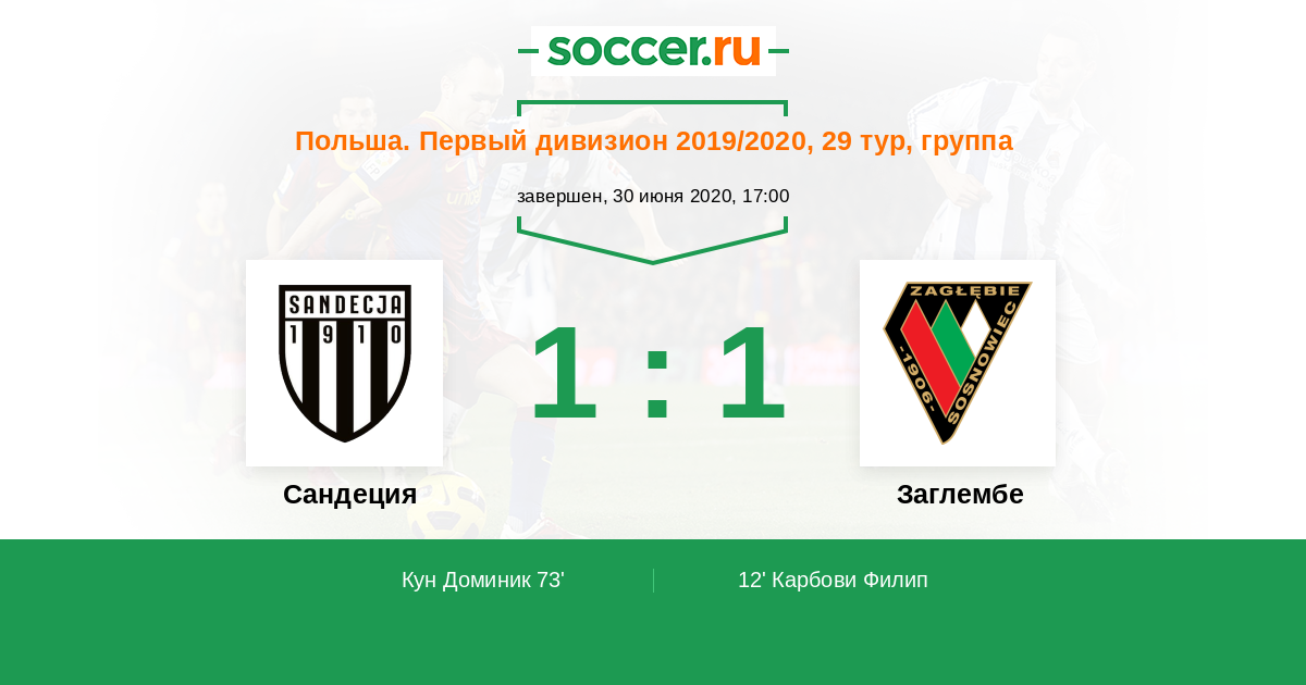 | Заглембе | 20:22 | 14:7 | 6:15 |