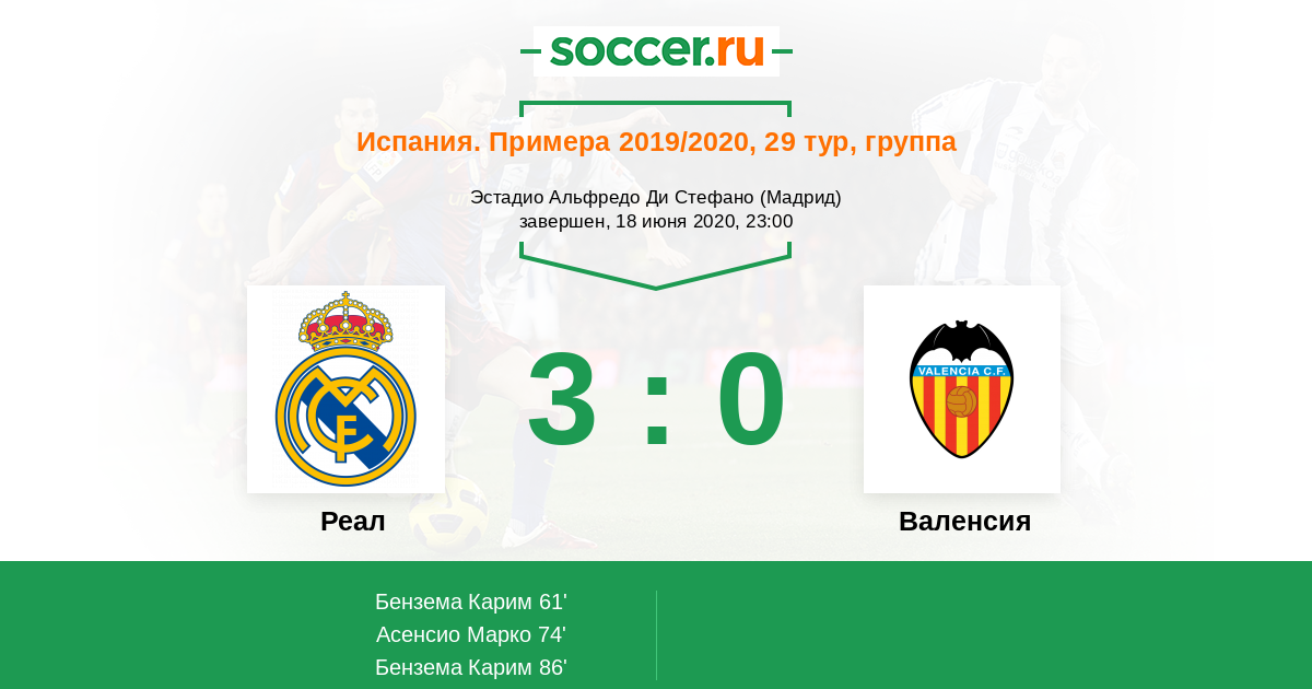 Мои поздравления поклонникам Реала! Качественная игра. Даже ловил себя на чувстве зависти к Реалу из за наличия в команде такого главного тренера, который четко и последовательно гнет свою линию современной тактики и схемы игры. Такая игра гораздо интереснее и зрелищнее, чем та породия на футбол, которую проповедует Сетьен в Барселоне, переняв все худшее у Вальверде, эти монотонные, тягучие пасы поперек и назад, отсутствие быстрых контратак, основы футбола, неумение организовать защиту команды. Футбол в исполнении Реала намного привлекательнее. Конечно же, Валенсия откровенно слаба и по качеству футбола достойна последнего места, но это не умаляет победы мадридцев, их желания и заряда настроя на игру.