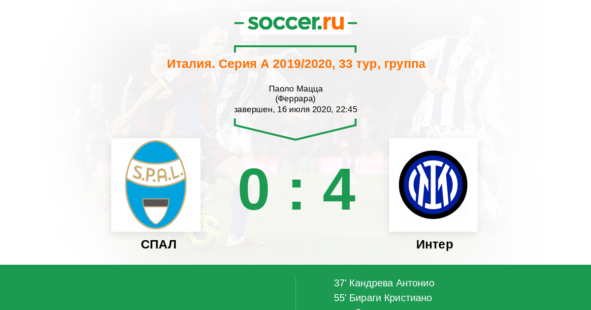Последние 5 игр дома Интер