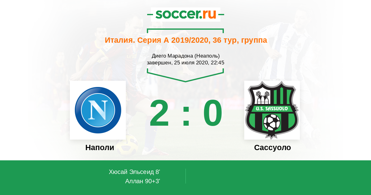 | Наполи | Сассуоло | |